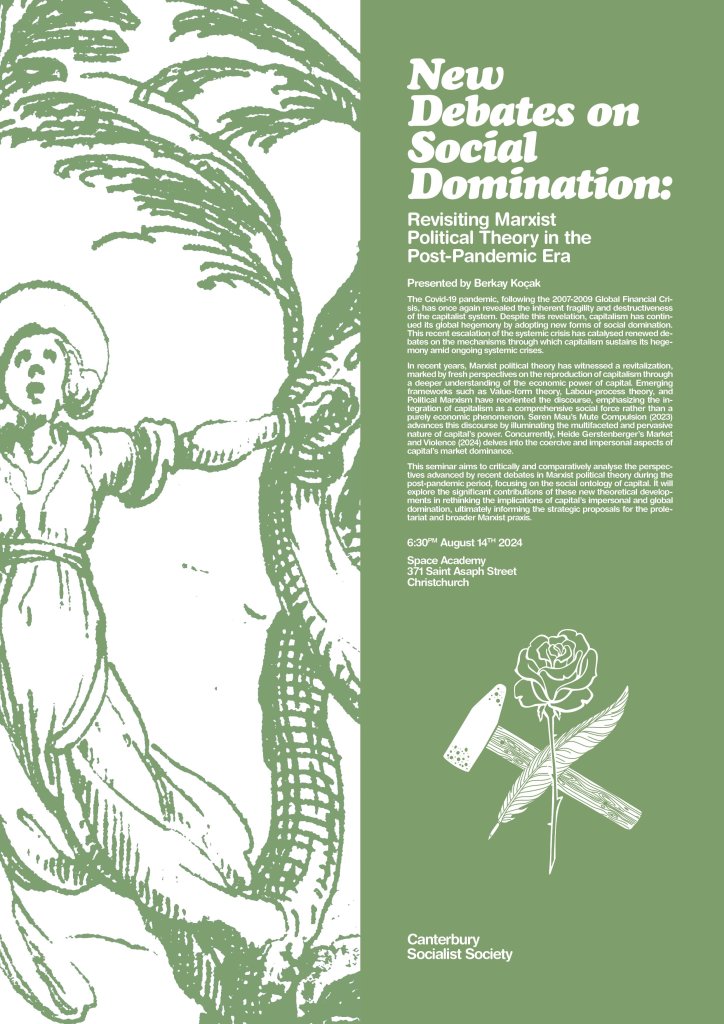 Koçak, B. (2024, August 14). New Debates on Social Domination: Revisiting Marxist Political theory in the Post-Pandemic Era. Presented at canterbury Socialist Society, space Academy, Christchurch, Canterbury, New zealand. Link